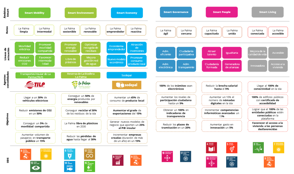 Por otra parte el objetivo Nº 11 “Ciudades y Comunidades Sostenibles es el núcleo tractor, el objetivo principal. Fundamentalmente mejora la calidad de vida de los habitantes de la isla, y para ello centra sus acciones en Gobernanza inteligente, Economía, Movilidad inteligente, Medioambiente y energía inteligente; y Ciudadanos inteligentes.