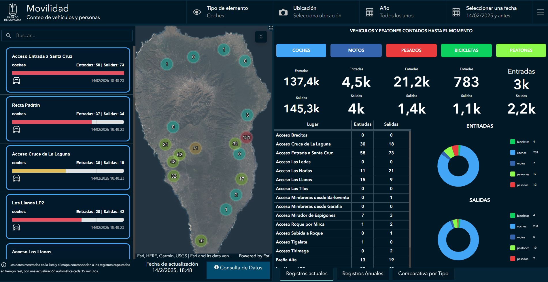 Movilidad en La Palma…. 🚗 🛵 🚛 🚴 … Se viene cositas…Estamos finalizando el cuadro de mando de acceso publico con los datos de movilidad en tiempo real de las más de 30 cámaras 🎥 distribuidas por toda la isla de La Palma . Red de carreteras, Senderos y rutas ciclistas. Transporte publico…🚀 La Palma SmartIsland LPSI 🚀 hashtag#CabildodeLaPalma «Rumbo a una isla eficiente»